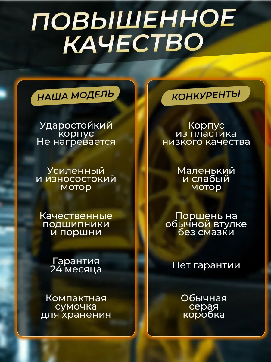 Выручил в экстренной ситуации на трассе! Мощный, справляется с накачкой быстро, процесс интуитивно понятен. Качество сборки отличное, все продумано. Долговечный и надежный - именно то, что нужно для безопасных поездок. Обязательная вещь в машине!